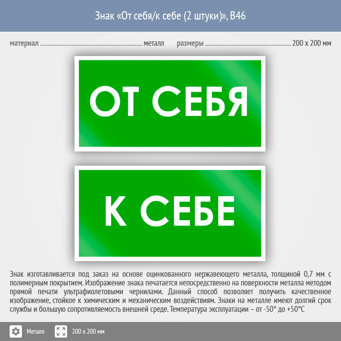 Знак «От себя/к себе», B46 (2 штуки, металл, 200х100 мм) в Череповце купить