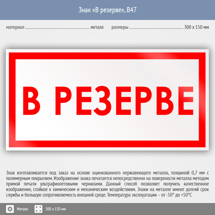 Знак «В резерве», B47 (металл, 300х150 мм) в Череповце купить