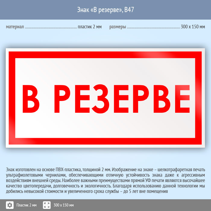 Знак «В резерве», B47 (пластик, 300х150 мм) в Череповце купить