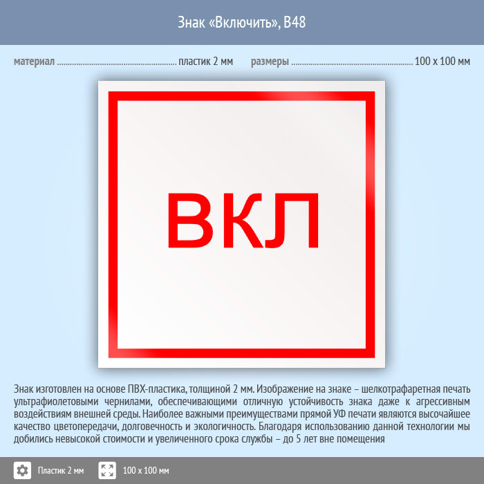 Знак «Включить», B48 (пластик, 100х100 мм) в Череповце купить