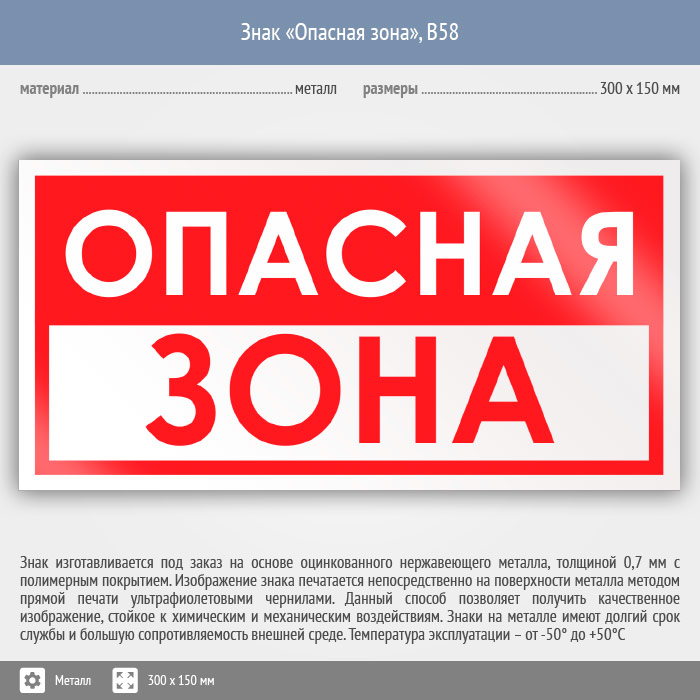 Знак «Опасная зона», B58 (металл, 300х150 мм) в Череповце купить