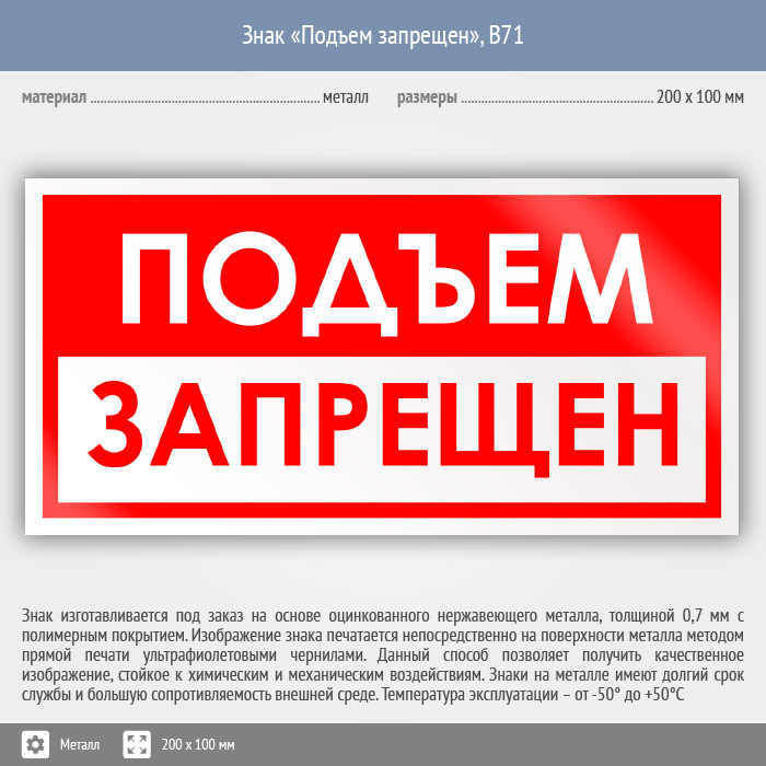 Знак «Подъем запрещен», B71 (металл, 200х100 мм) в Череповце купить