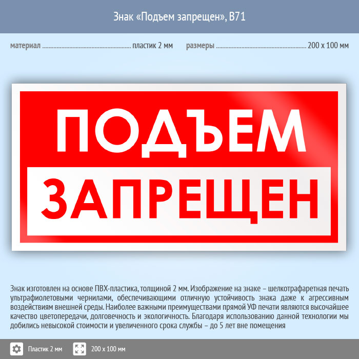 Знак «Подъем запрещен», B71 (пластик, 200х100 мм) в Череповце купить