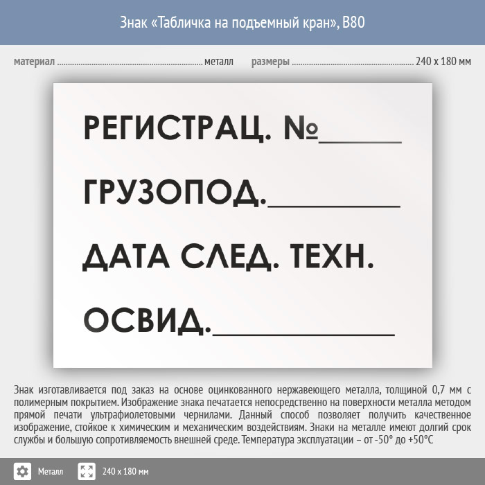 Знак «Табличка на подъемный кран», B80 (металл, 240х180 мм) в Череповце купить