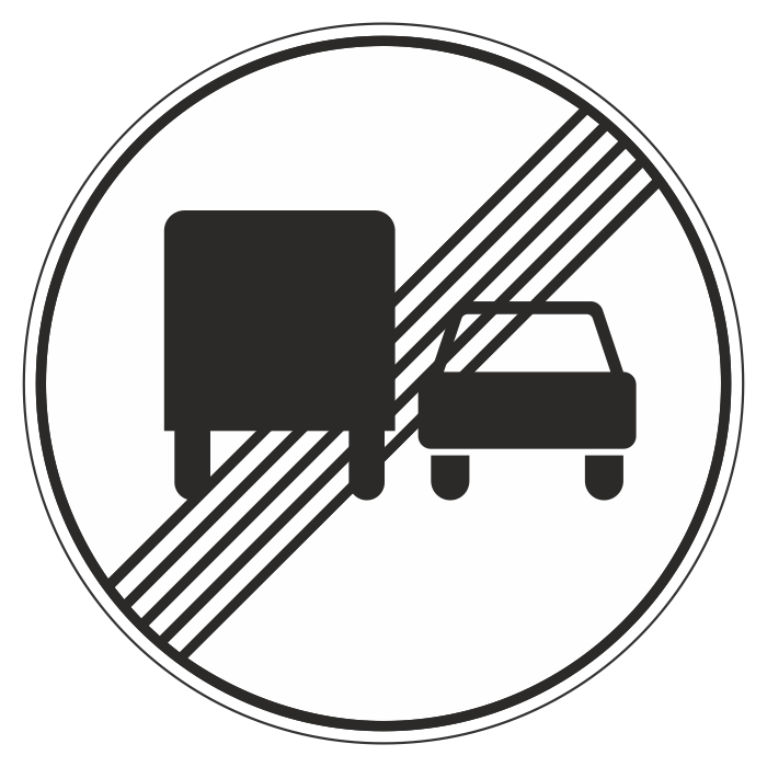 Дорожный знак 3.23 «Конец зоны запрещения обгона грузовым автомобилям» (металл 0,8 мм, II типоразмер: диаметр 700 мм, С/О пленка: тип А инженерная) в Череповце купить