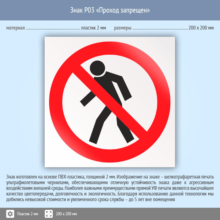 Знак P03 «Проход запрещен» (пластик, 200х200 мм) в Череповце купить
