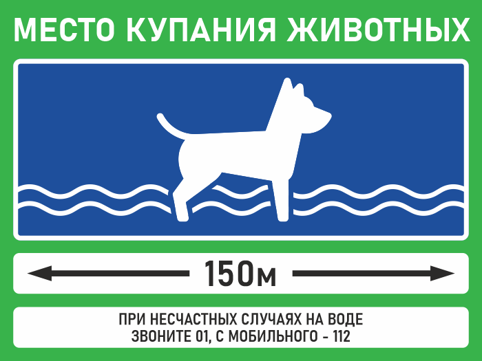 Знак «Место купания животных», БВ-35 (пластик 2 мм, 400х300 мм)