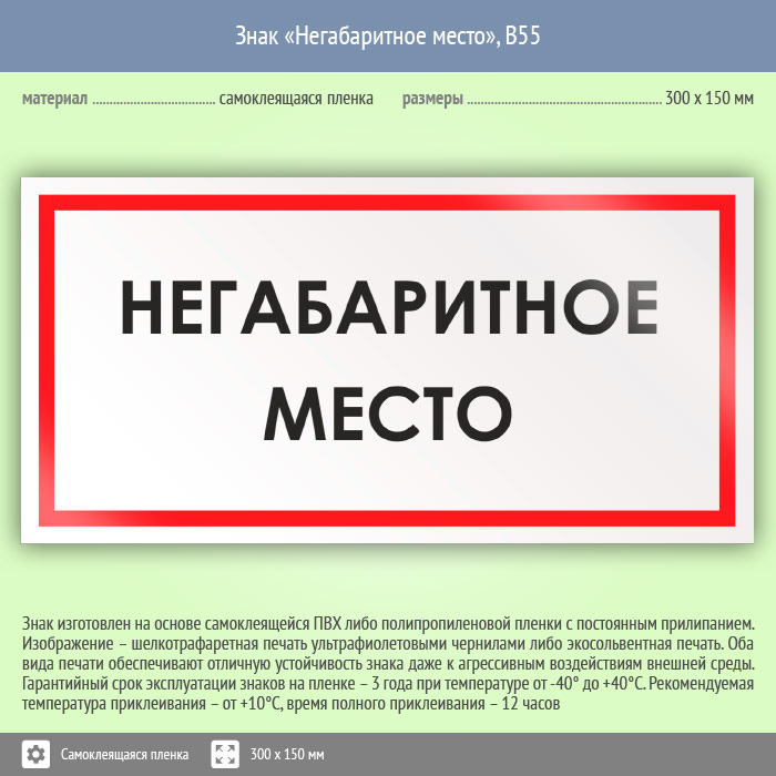 Знак «Негабаритное место», B55 (пленка, 300х150 мм)