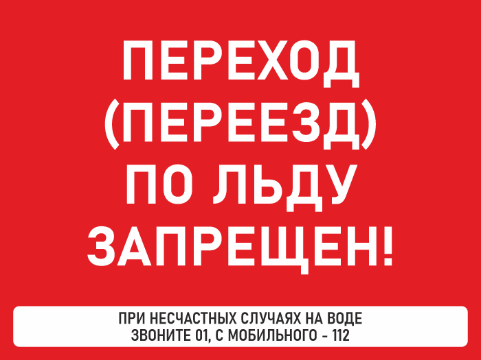 Знак «Переход (переезд) по льду запрещен!», БВ-37 как уже видно из названия, обозначает место, в котором запрещен переход (переезд) по льду. Так же знак содержит телефоны эксренных служб