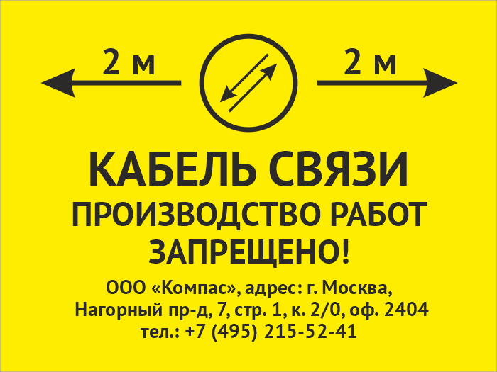 Знак «Охранная зона кабеля связи. Производство работ запрещено», OZK-03 (пластик 2 мм, 400х300 мм) в Череповце купить
