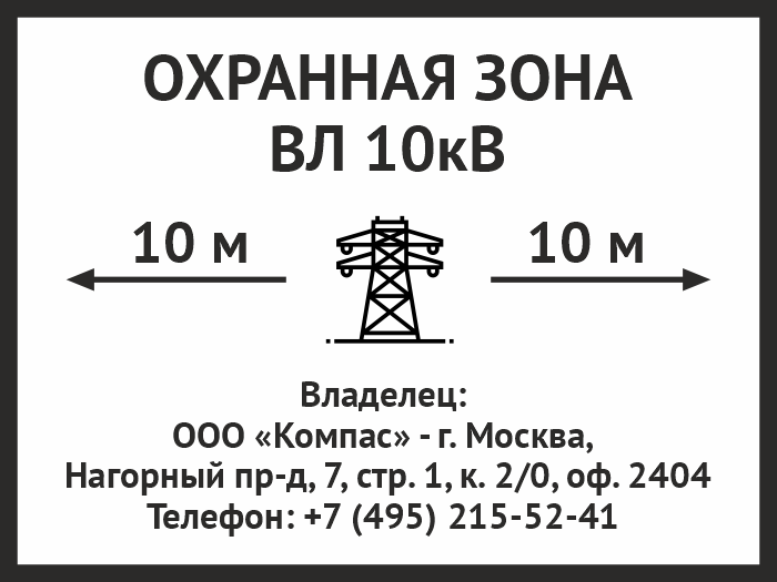 Знак «Охранная зона ВЛ 10 кВ (высоковольтной линии)», OZK-07 (пластик 2 мм, 400х300 мм) в Череповце купить