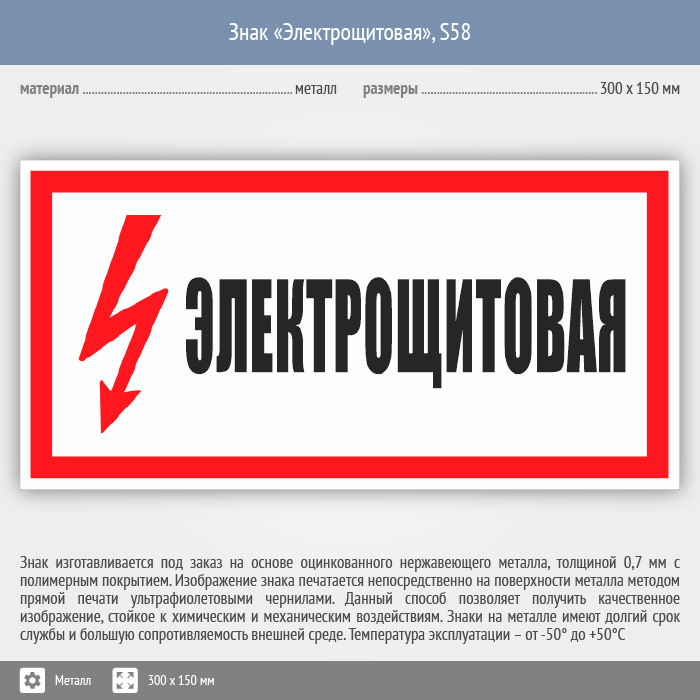 Знак (плакат) «Электрощитовая», S58 (металл, 300х150 мм) в Череповце купить