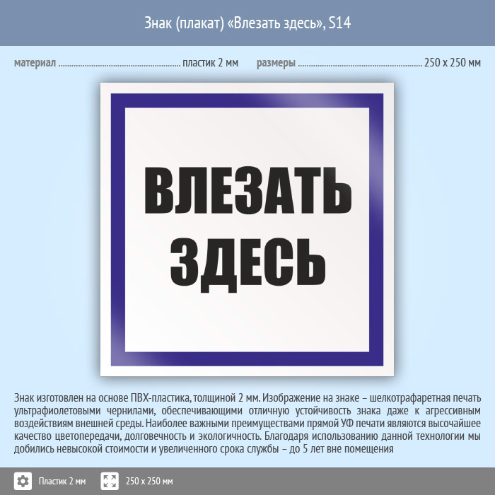 Знак (плакат) «Влезать здесь», S14 (пластик, 250х250 мм) в Череповце купить
