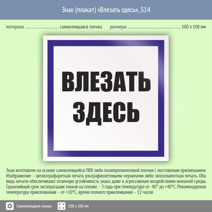 Знак (плакат) «Влезать здесь», S14 (пленка, 100х100 мм) в Череповце купить