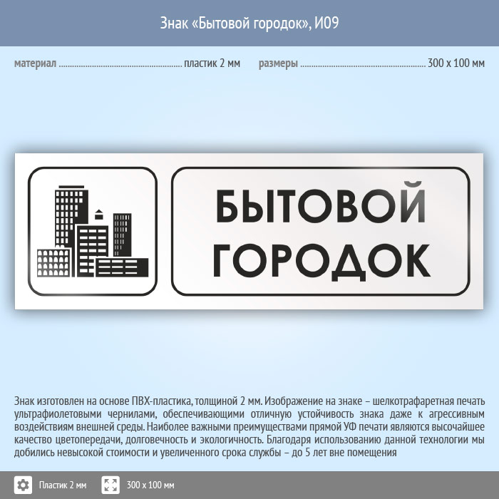 Знак «Бытовой городок», И09 (пластик, 300х100 мм) в Череповце купить