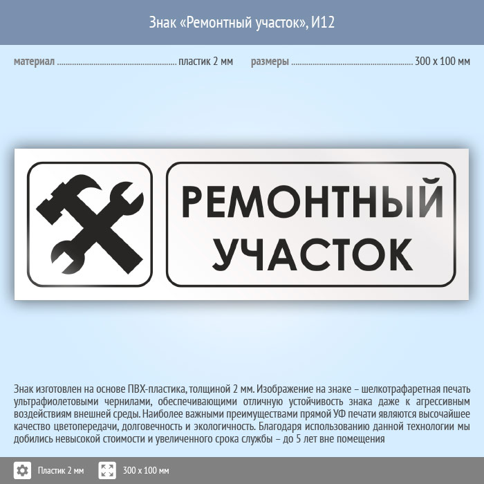 Знак «Ремонтный участок», И12 (пластик, 300х100 мм) в Череповце купить