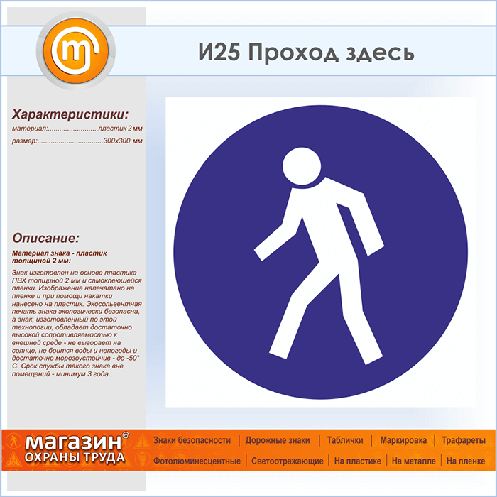 Знак «Проход здесь», И25 (пластик, 300х300 мм) в Череповце купить