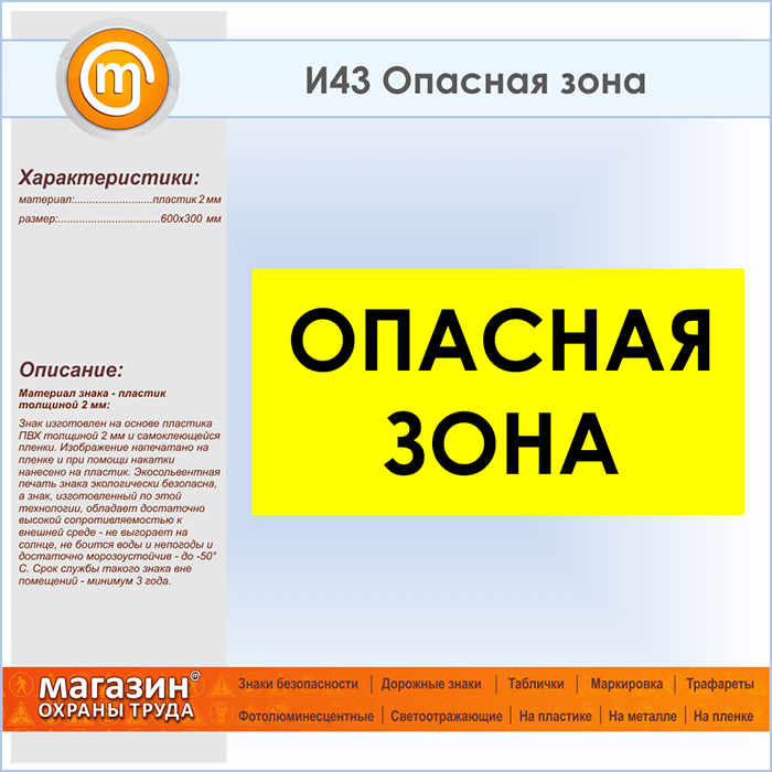 Знак «Опасная зона», И43 (пластик, 600х300 мм) в Череповце купить