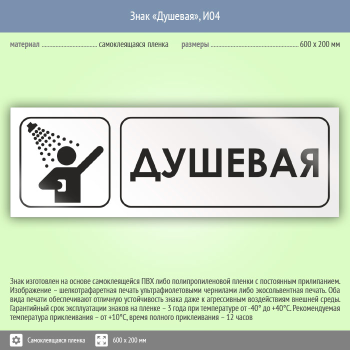 Знак «Душевая», И04 (пленка, 600х200 мм) в Череповце купить