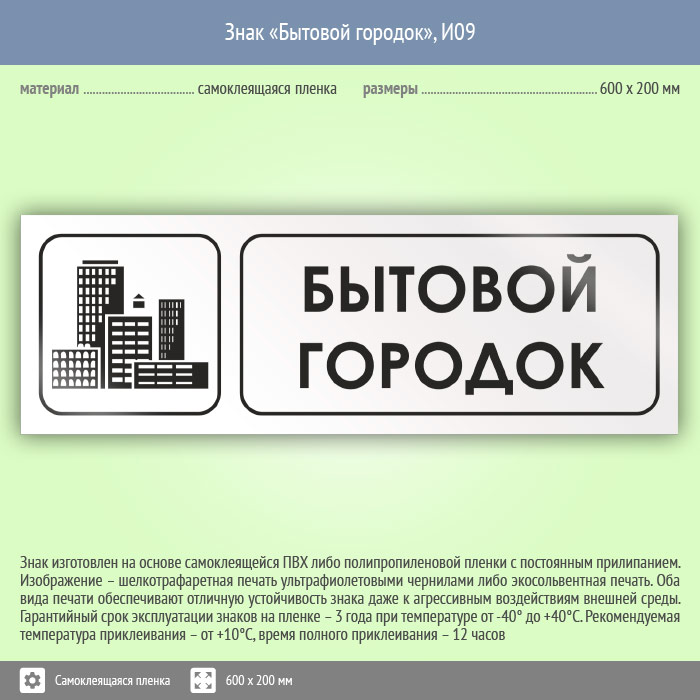 Знак «Бытовой городок», И09 (пленка, 600х200 мм) в Череповце купить