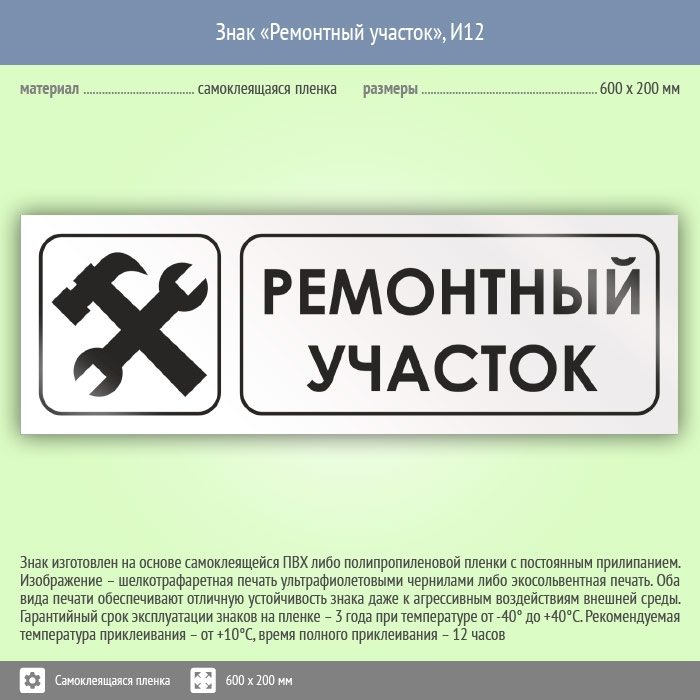 Знак «Ремонтный участок», И12 (пленка, 600х200 мм) в Череповце купить