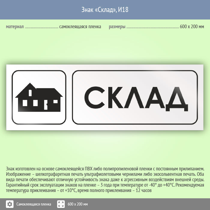 Знак «Склад», И18 (пленка, 600х200 мм) в Череповце купить