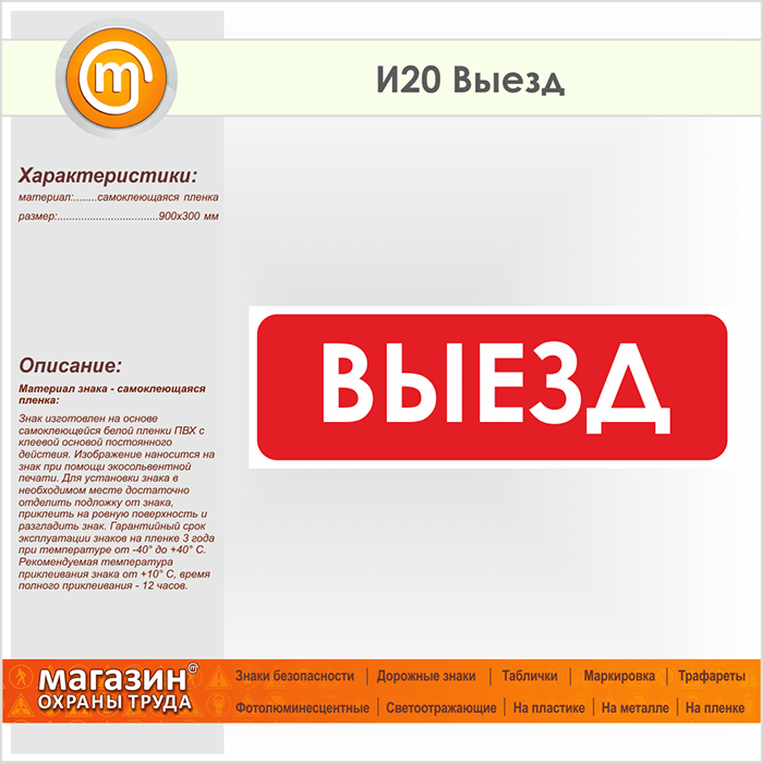 Знак «Выезд», И20 (пленка, 900х300 мм) в Череповце купить