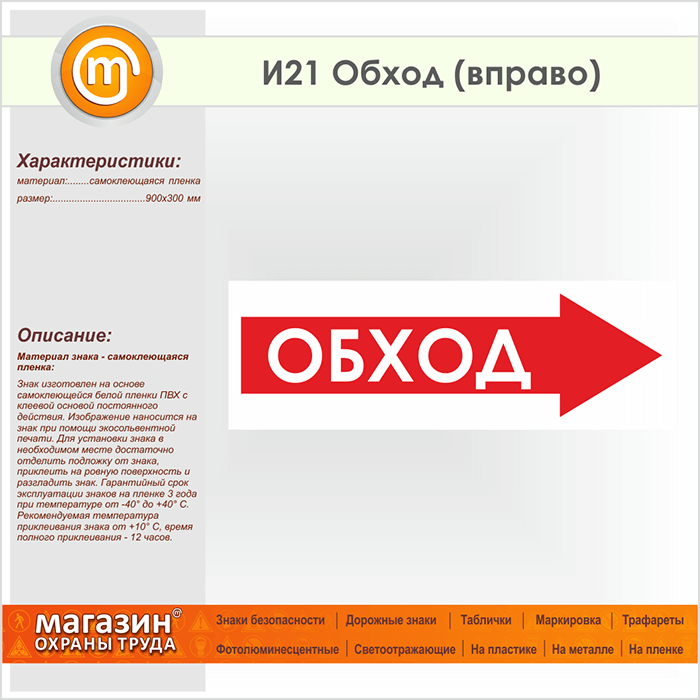 Знак «Обход (вправо)», И21 (пленка, 900х300 мм) в Череповце купить
