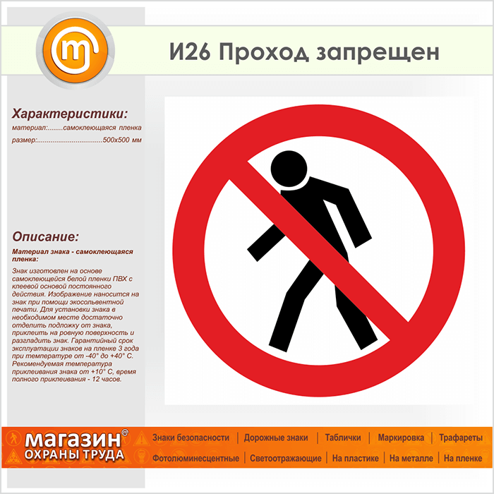 Знак «Проход запрещен», И26 (пленка, 500х500 мм) в Череповце купить