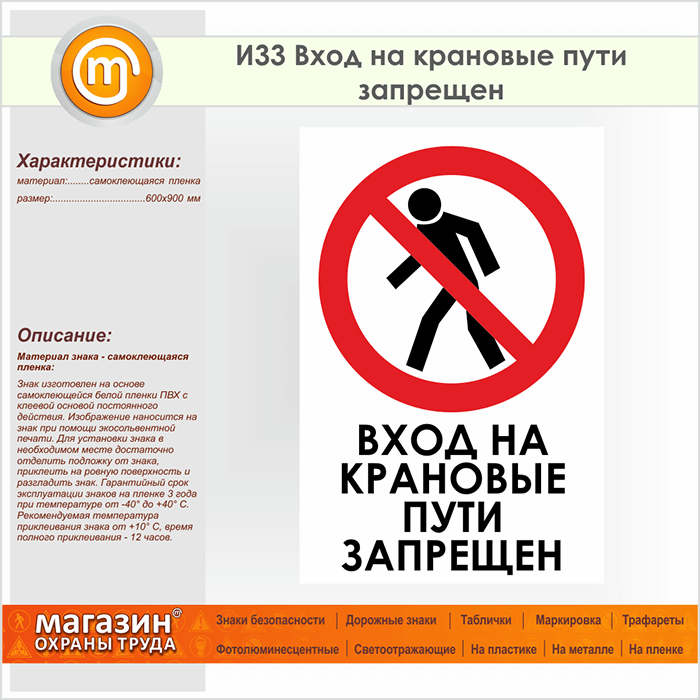 Знак «Вход на крановые пути запрещен», И33 (пленка, 600х900 мм) в Череповце купить