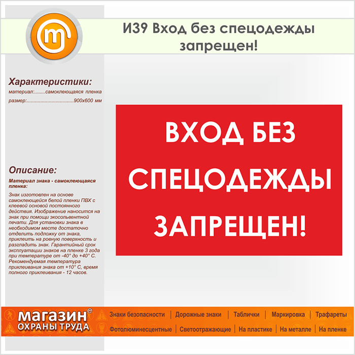 Знак «Вход без спецодежды запрещен!», И39 (пленка, 900х600 мм) в Череповце купить
