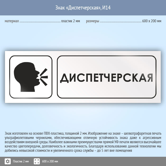 Знак «Диспетчерская», И14 (пластик, 600х200 мм) в Череповце купить