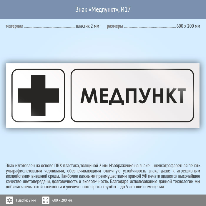 Знак «Медпункт», И17 (пластик, 600х200 мм) в Череповце купить