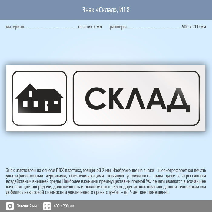 Знак «Склад», И18 (пластик, 600х200 мм) в Череповце купить