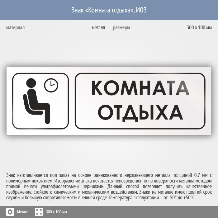Знак «Комната отдыха», И03 (металл, 300х100 мм) в Череповце купить