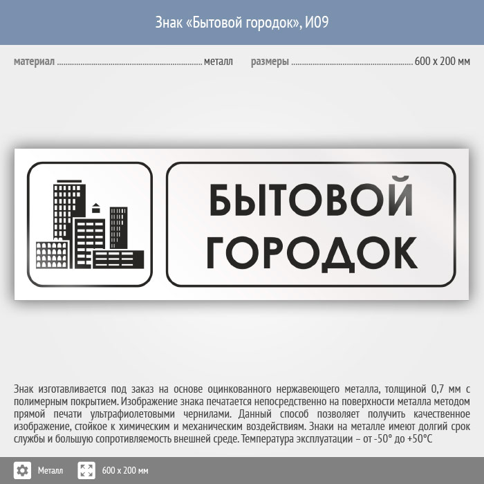 Знак «Бытовой городок», И09 (металл, 600х200 мм) в Череповце купить