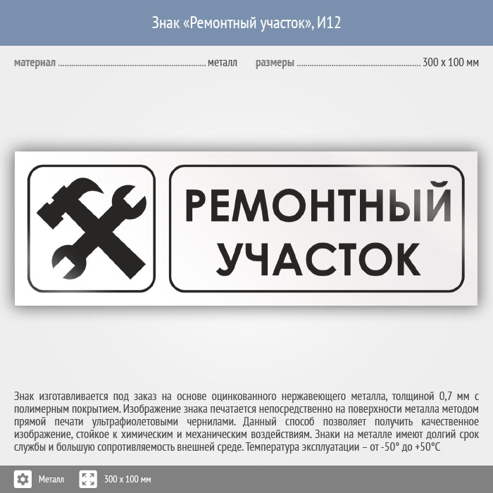 Знак «Ремонтный участок», И12 (металл, 300х100 мм) в Череповце купить