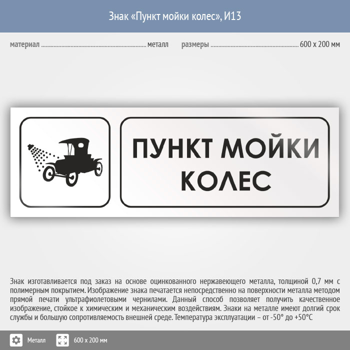 Знак «Пункт мойки колес», И13 (металл, 600х200 мм) в Череповце купить