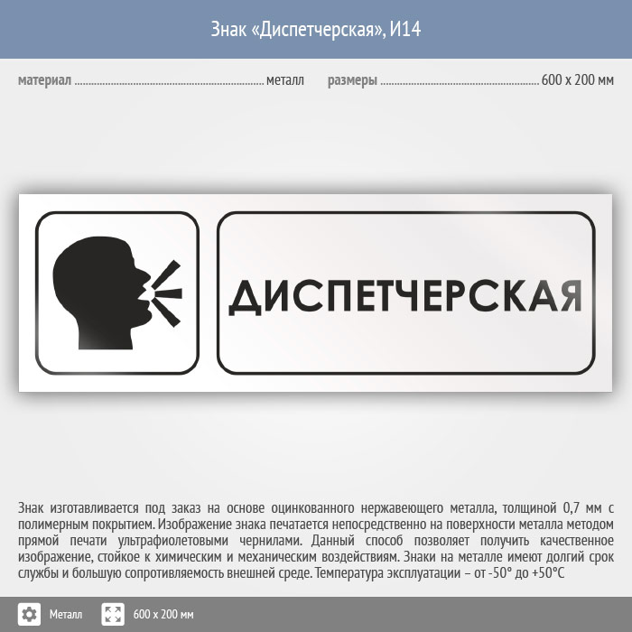 Знак «Диспетчерская», И14 (металл, 600х200 мм) в Череповце купить