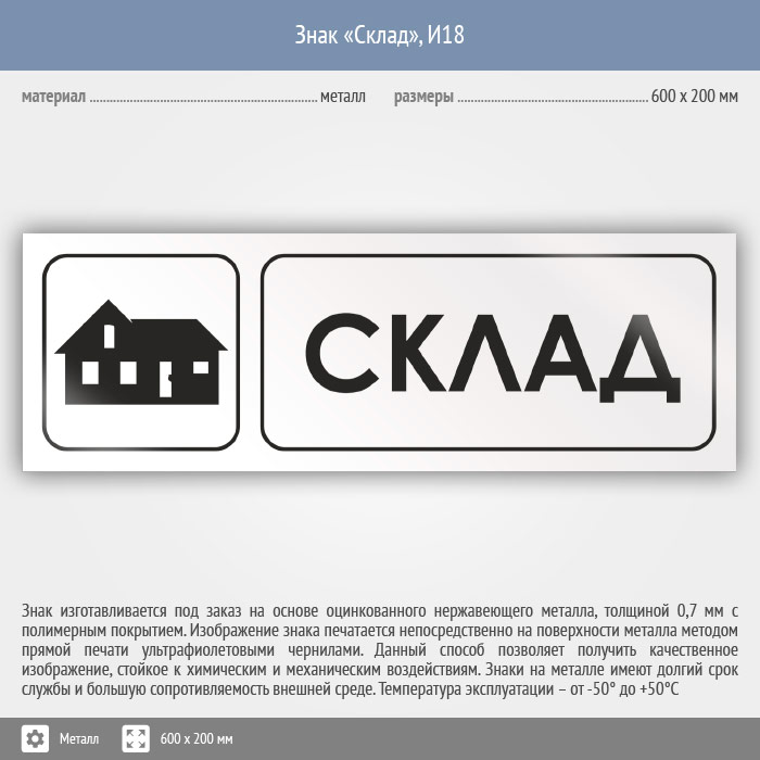 Знак «Склад», И18 (металл, 600х200 мм) в Череповце купить