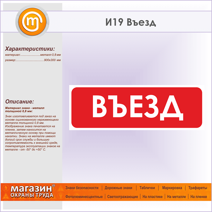 Знак «Въезд», И19 (металл, 900х300 мм) в Череповце купить
