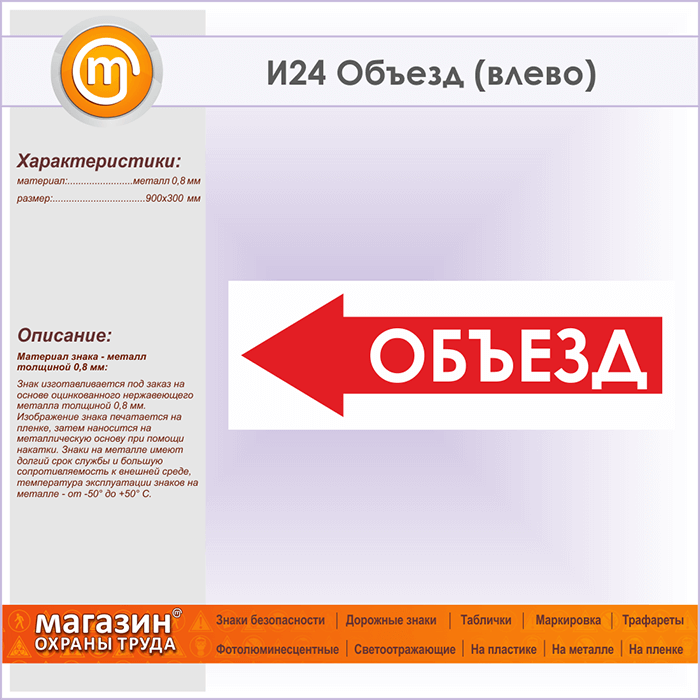 Знак «Объезд (влево)», И24 (металл, 900х300 мм) в Череповце купить