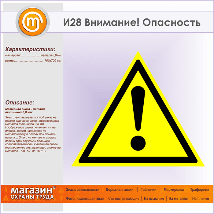 Знак «Внимание! Опасность», И28 (металл, сторона 700 мм) в Череповце купить