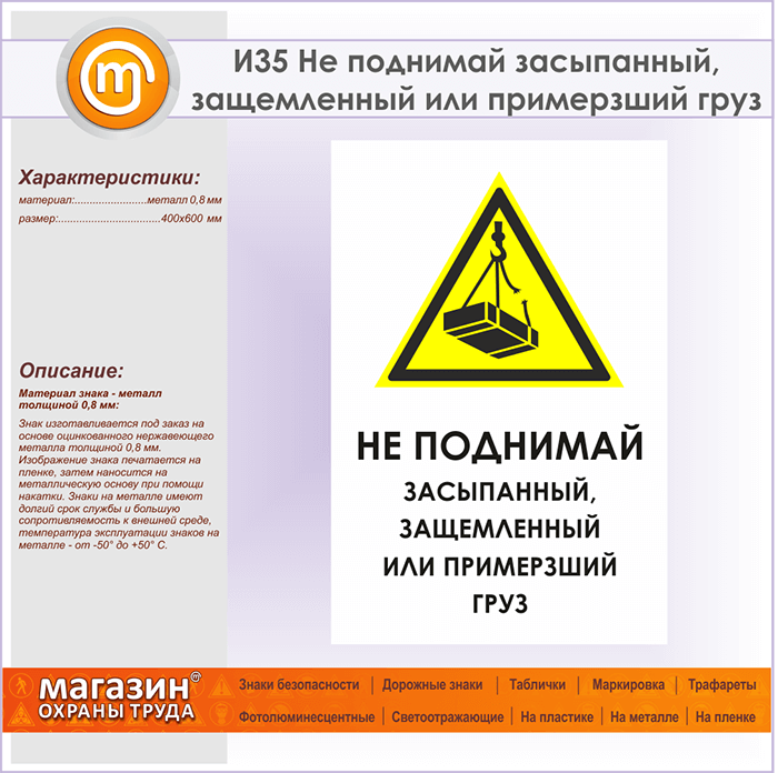 Знак «Не поднимай засыпанный, защемленный или примерзший груз», И35 (металл, 400х600 мм) в Череповце купить