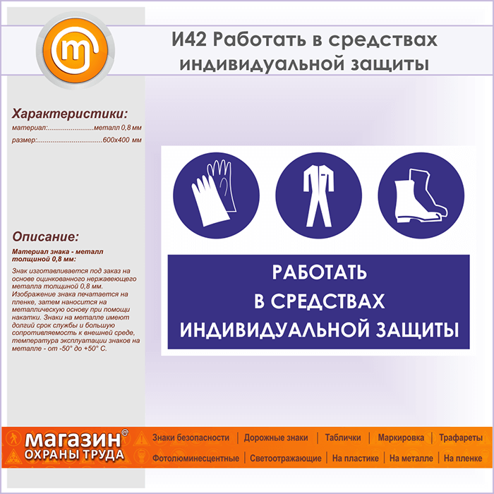 Знак «Работать в средствах индивидуальной защиты», И42 (металл, 600х400 мм) в Череповце купить