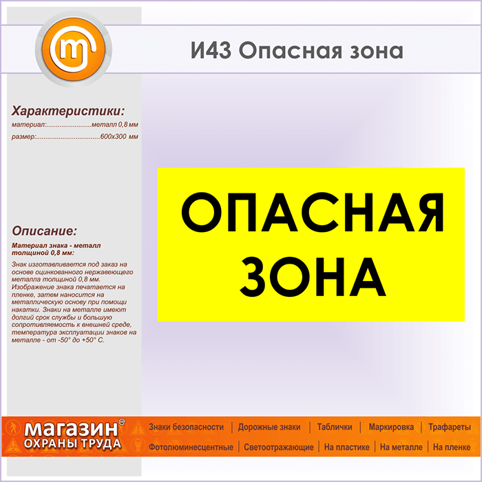 Знак «Опасная зона», И43 (металл, 600х300 мм) в Череповце купить